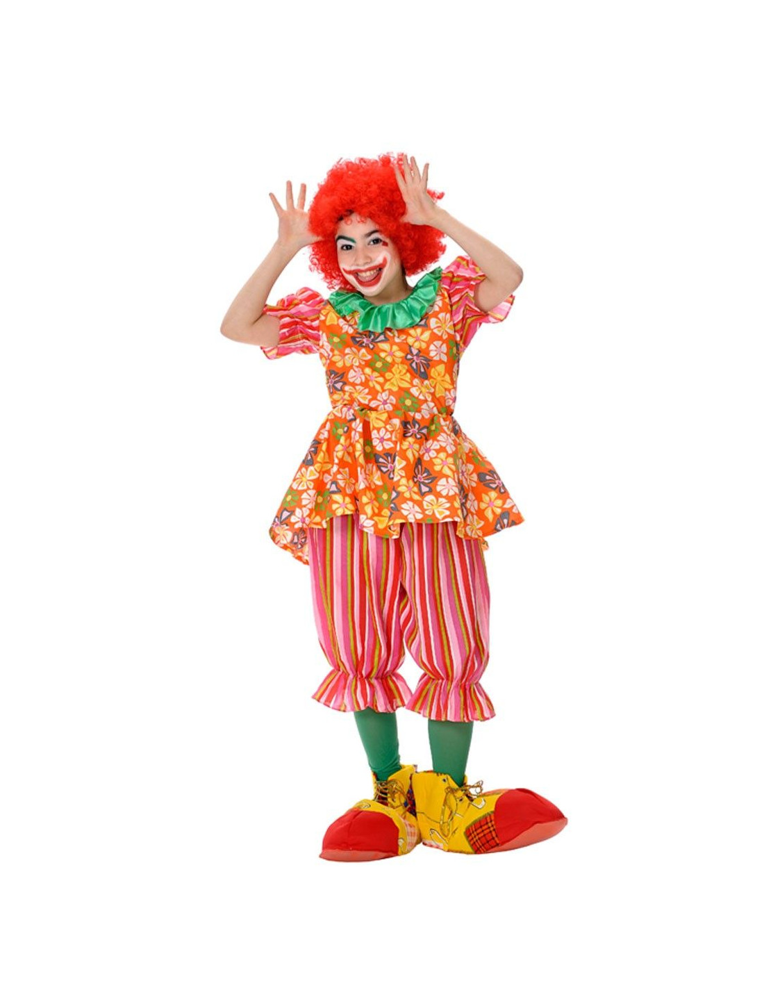 El traje incluye vestido estampado y pantalón. Da poca talla. Haz el payaso todo lo que quieras y más con este disfraz de payasa.
