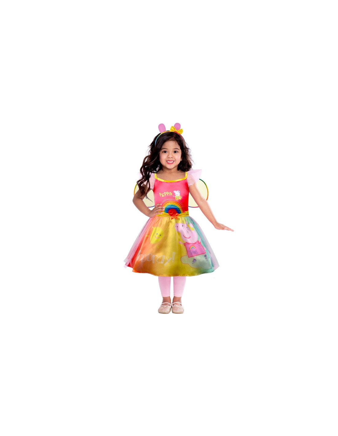 Disfraz Peppa Pig Rainbow Dress para niña que incluye vestido, alas y diadema.