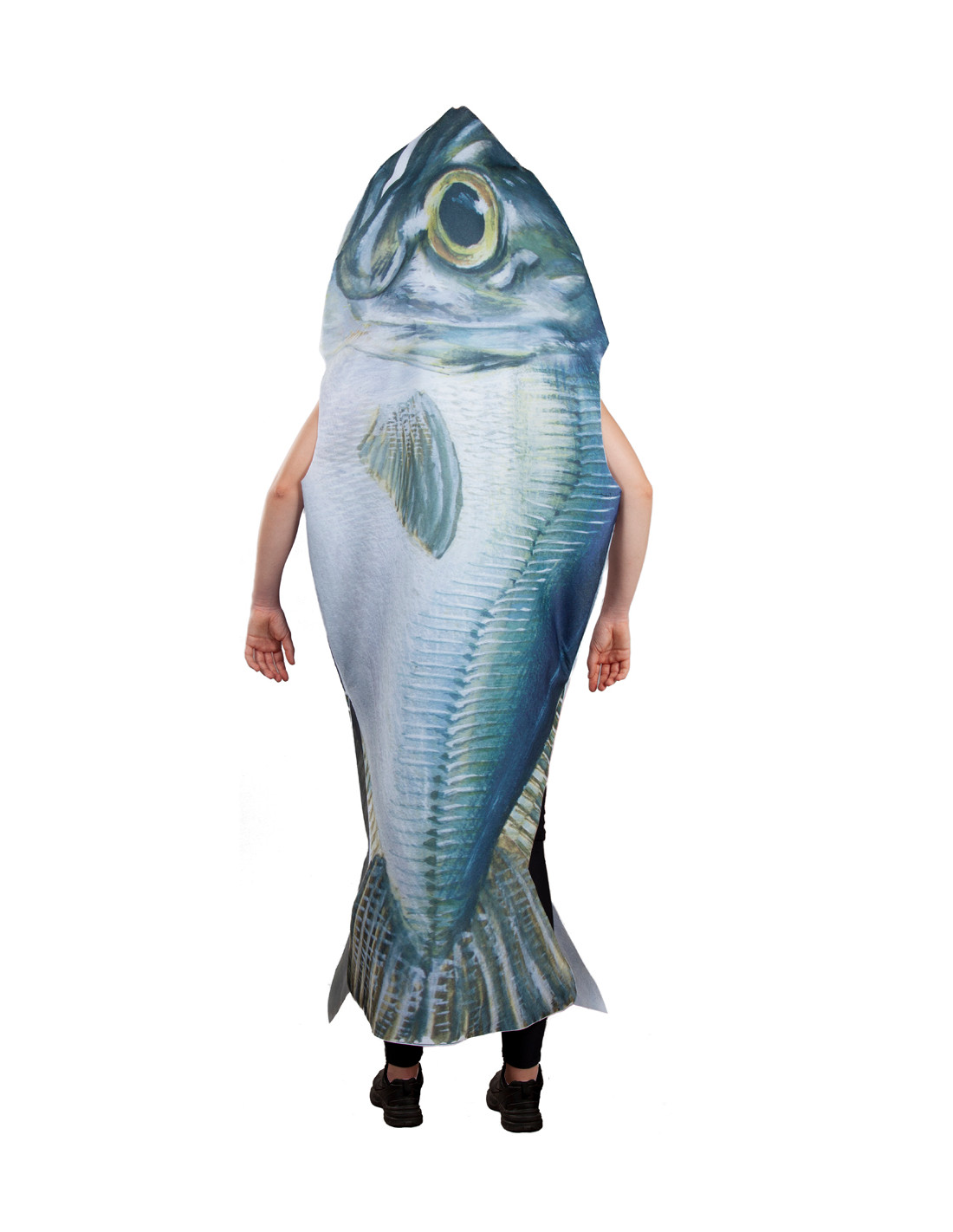 Disfraz pez Merluzo para adulto que incluye el disfraz de pescado de cuerpo entero.
