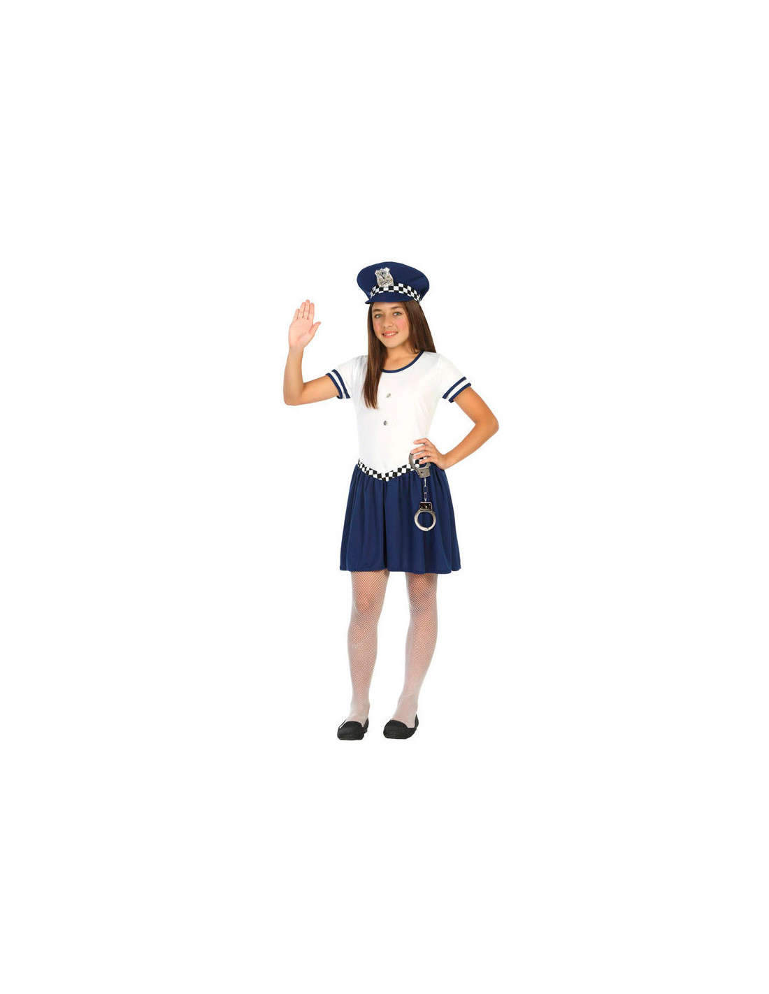 Disfraz policía urbana para niña que incluye vestido y gorra.