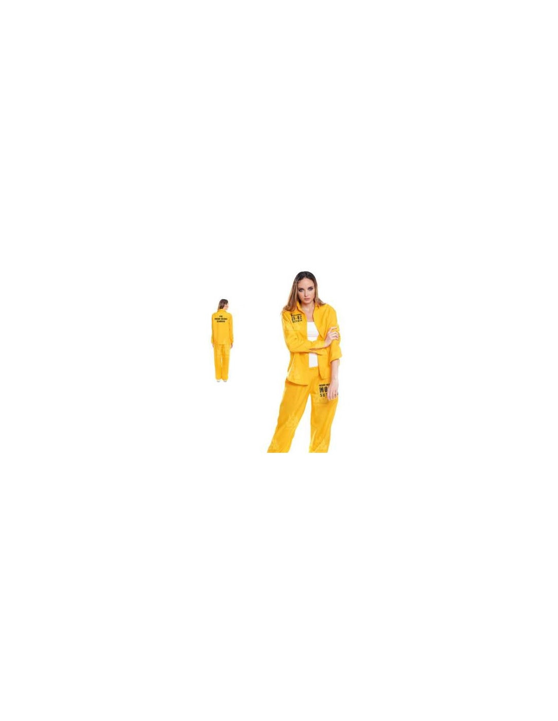Disfraz presidiaria amarilla para mujer que incluye, camisa y pantalón. No incluye camiseta blanca interior.