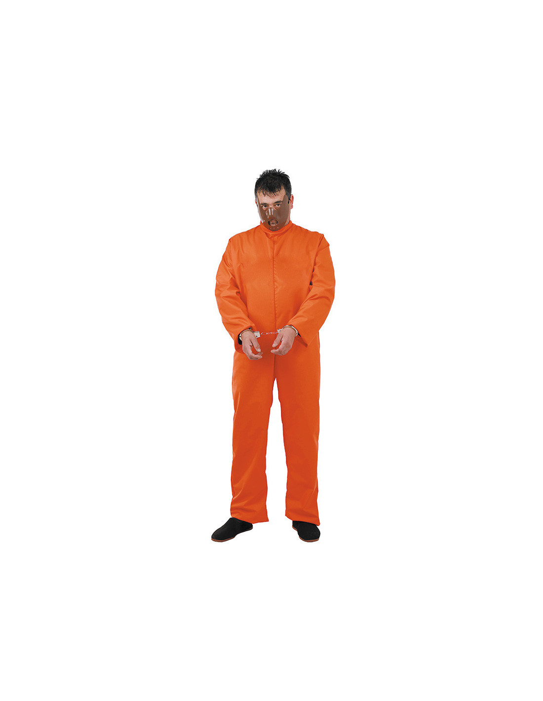 Este disfraz de preso naranja contiene un mono de cuerpo entero naranja con cremallera en la espalda.