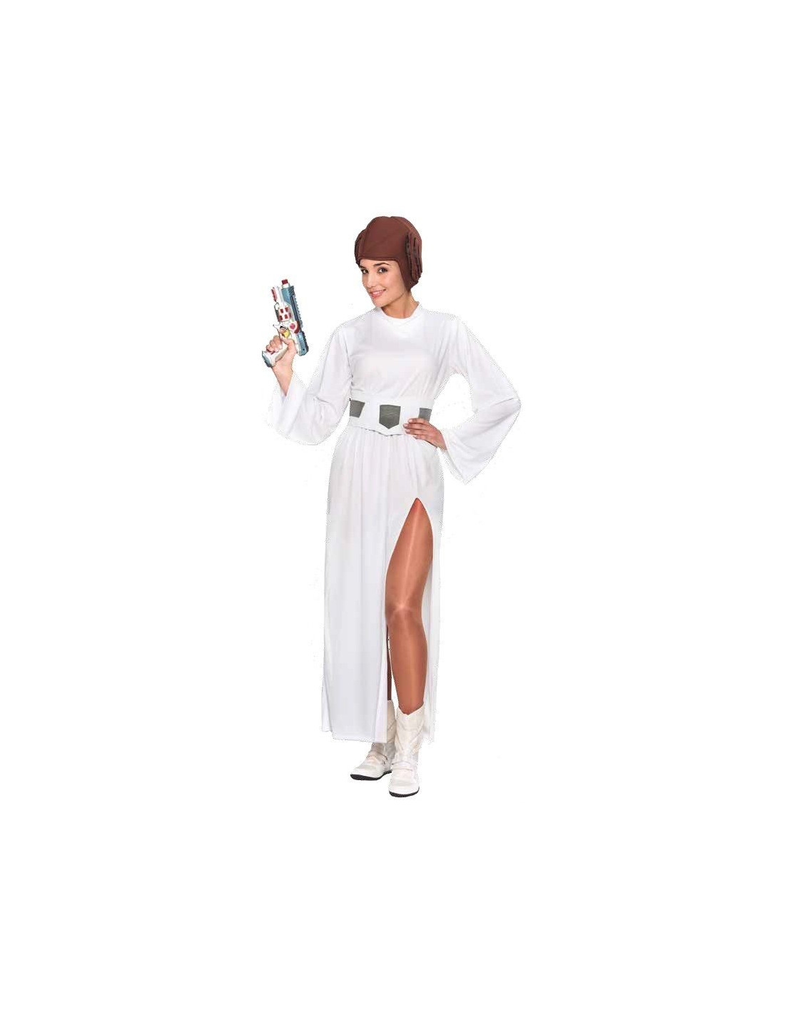Disfraz Princesa Leia con la que convertirte en la protagonista de la famosa saga de Star Wars. El traje incluye vestido, cinturón, peluca simulada. Talla única.