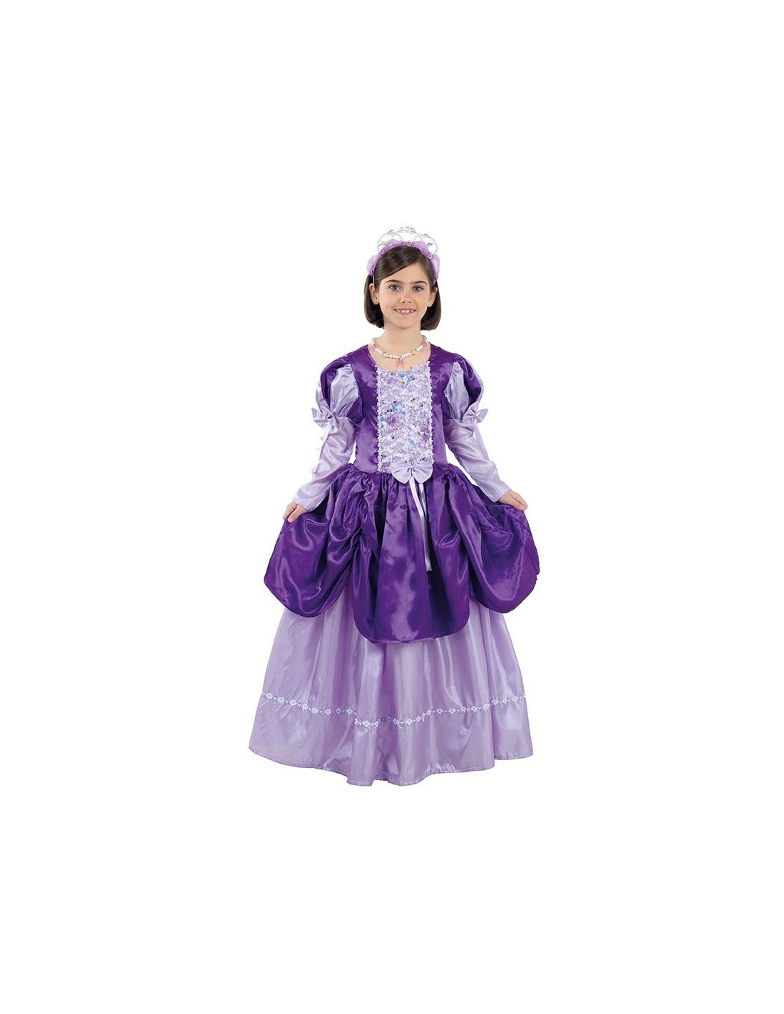 Disfraz princesa morada niña que incluye un precioso vestido en distintas tonalidades de morado y detalles en color plata.