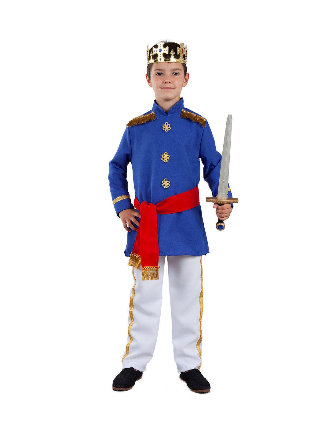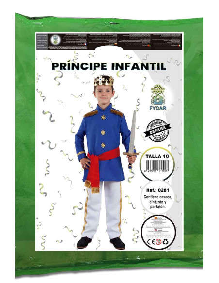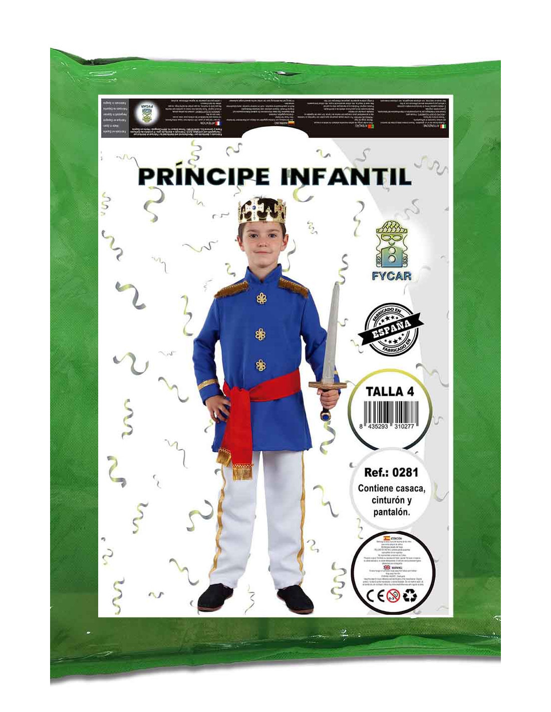 Disfraz príncipe azul infantil que incluye casaca, cinturón y pantalón.