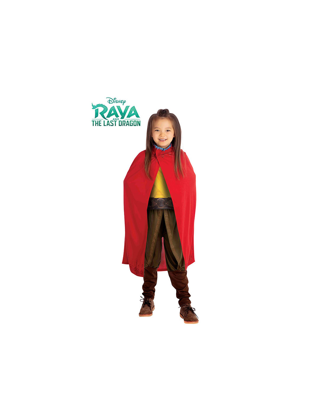 El completo isfraz Raya y el último dragón contiene una camiseta y chaqueta integradas con detalles impresos digitalmente, pantalones y la característica capa roja de este personaje.
