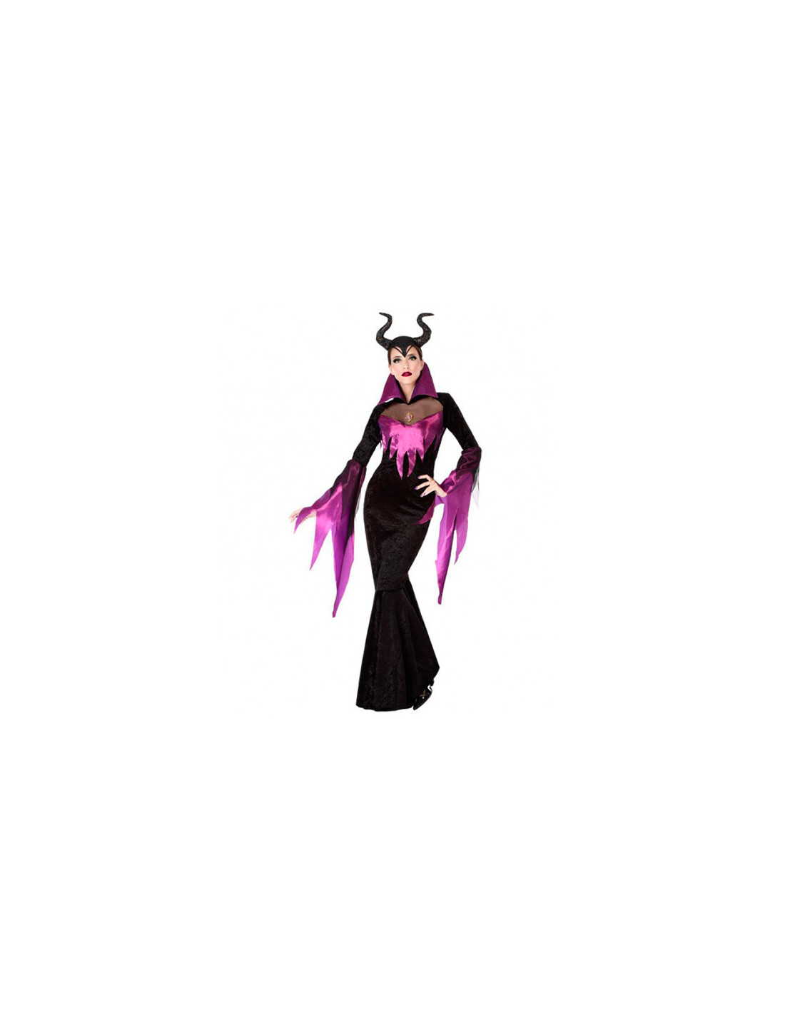 Disfraz reina Maléfica para mujer que incluye un vestido largo con cuello.
