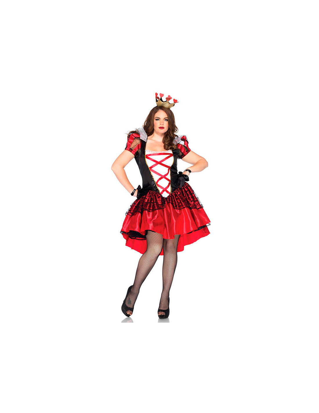 Precioso Disfraz Reina Roja talla grande al que no le falta detalle. Desprende elegancia y un toque picante con este disfraz de Reina de Corazones.
