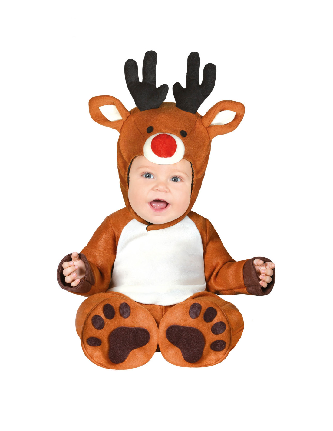 Disfraz reno feliz bebé para celebraciones y eventos navideños. Tu pequeño vivirá sus primeras navidades son este simpático traje, no olvidéis sacaros unas fotografías para que guardar este bonito recuerdo para siempre.
