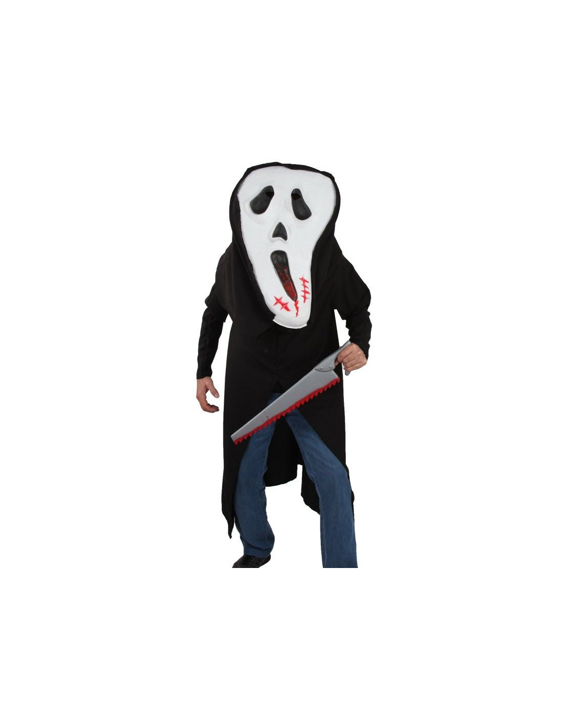Incluye tunica negra y cabeza de goma eva pintada y con volumen en relieve. Original disfraz Scream cabezón con cabeza gigante para llevar este Halloween y aterrorizar a todo el mundo. solo para tallas grandes de niño y adulto
