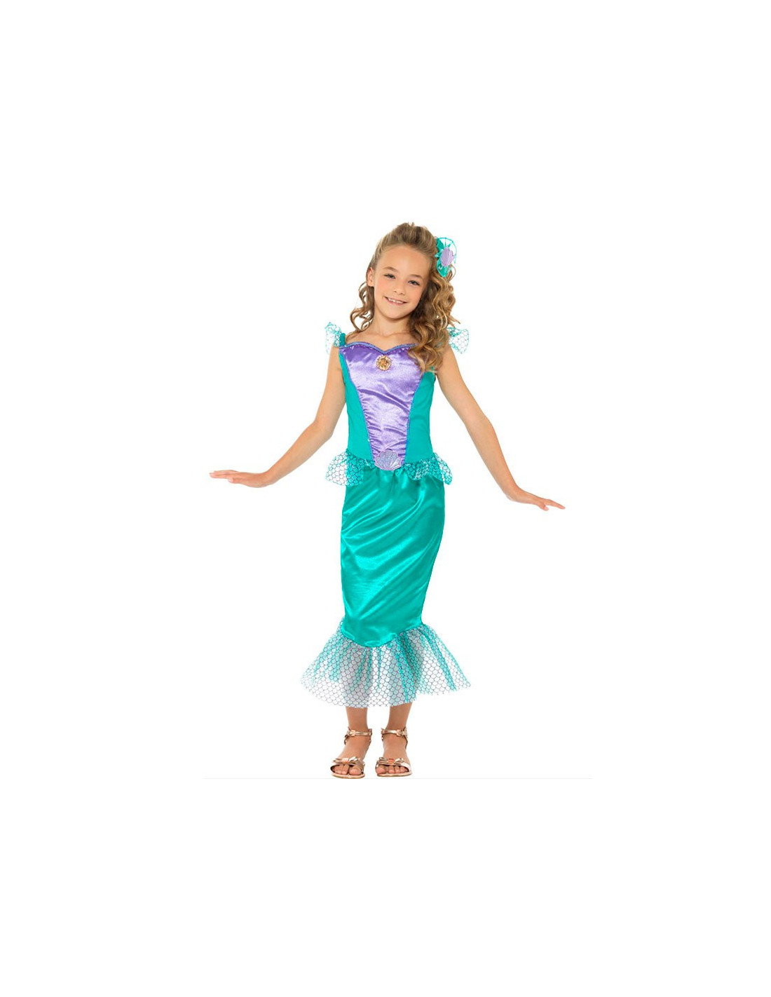 Disfraz sirenita deluxe para niña que incluye un vestido y pinza para el cabello.