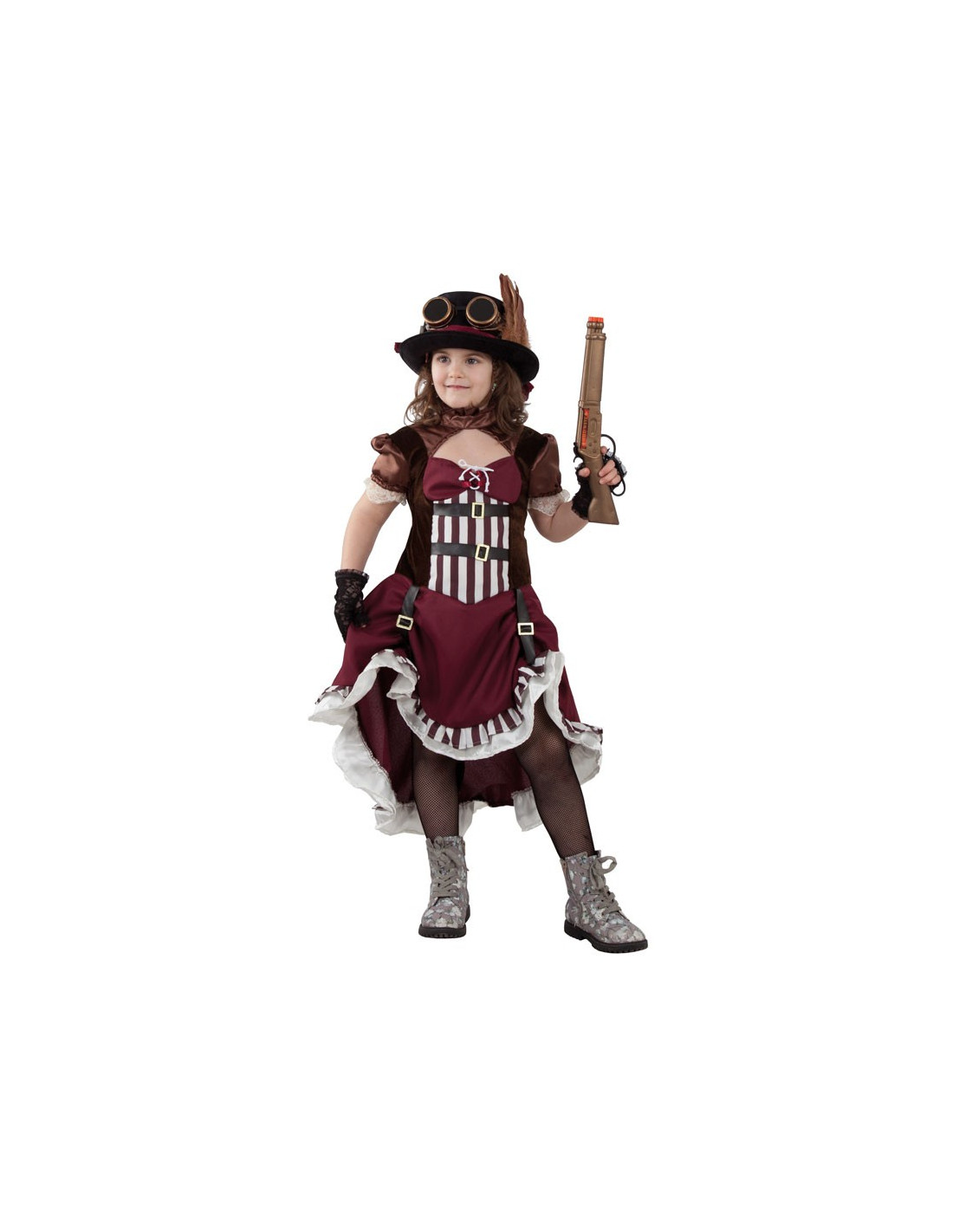 Disfraz Steampunk para niña compuesto por un vestido. No incluye sombrero, gafas, guantes ni botas.