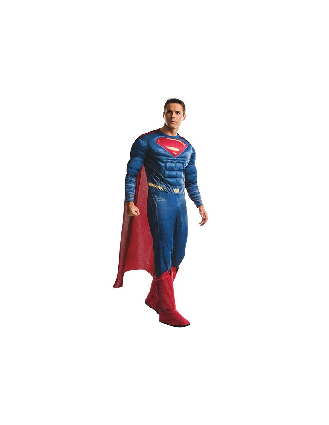Disfraz Superman Liga de la Justicia adulto que incluye el mono entero con músculos en el pecho, cubrebotas y capa.
