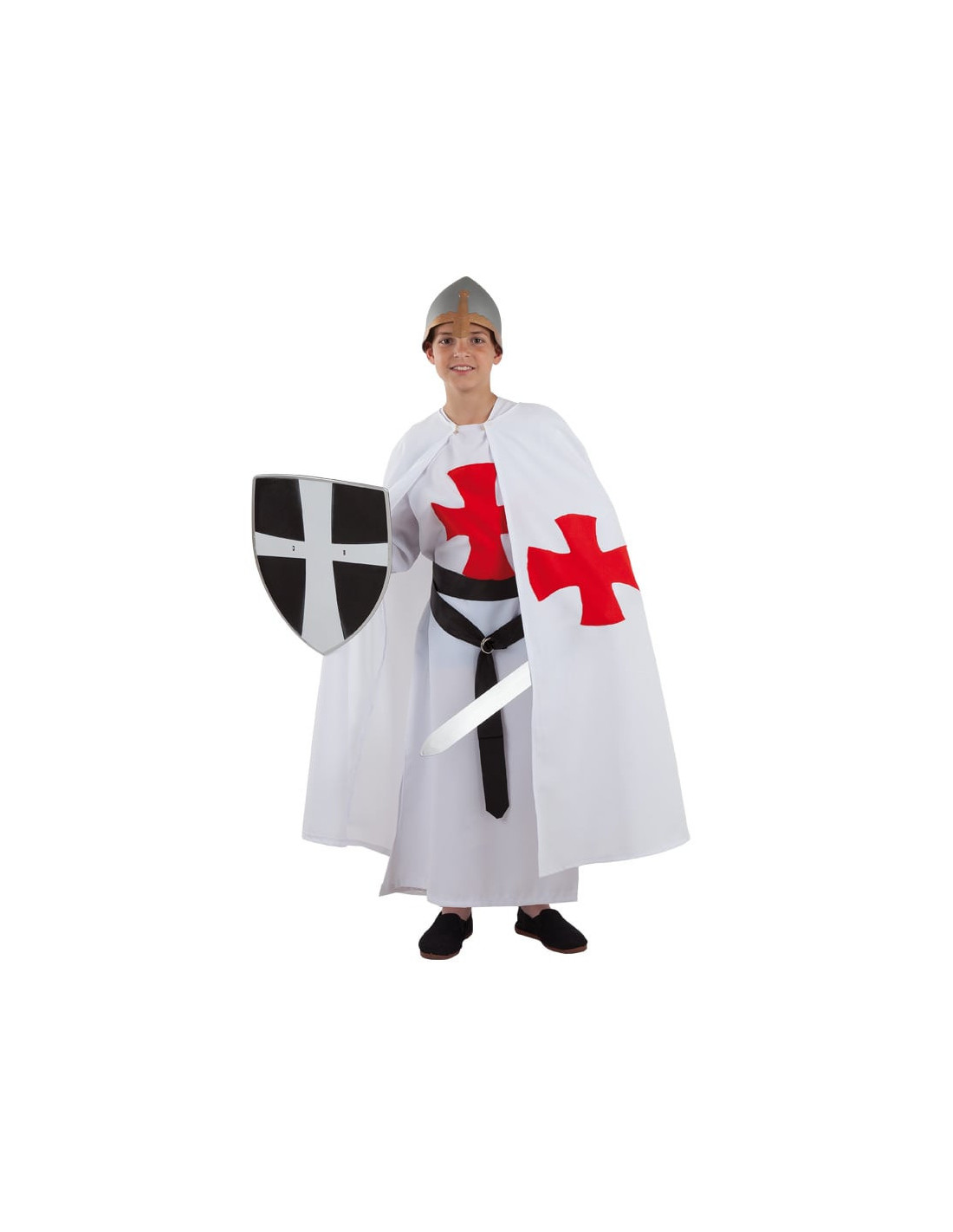 Disfraz templario medieval para que tu pequeño forme parte de las cruzadas. Este disfraz es de la orden de los templarios medievales del Rey Pedro 1 de Araron Perfecto para fiestas temáticas y ferias medievales.