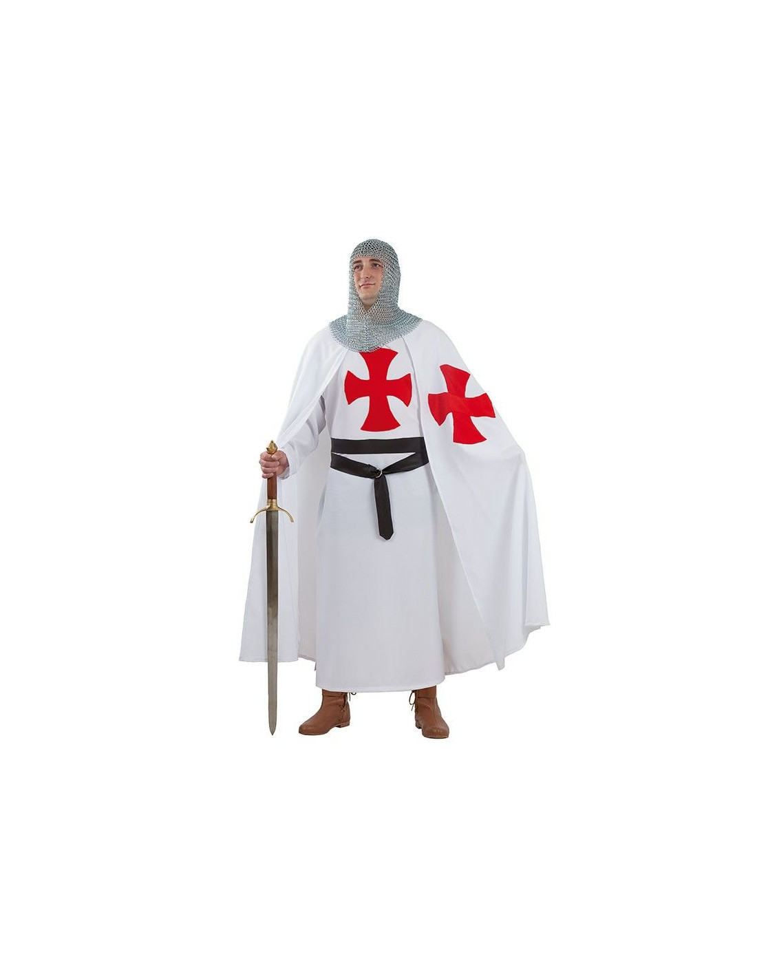 El disfraz de la orden de los  templario incluye capa con curz, túnica con cruz y cinturón de doble vuelta de polipiel. con este disfraz templario medieval puedes convertirte en un elegante caballero de las cruzadas del rey Pedro I de Aragon y unirte en la defensa de los territorios conquistados. Este traje es perfecto para desfiles y eventos medievales.