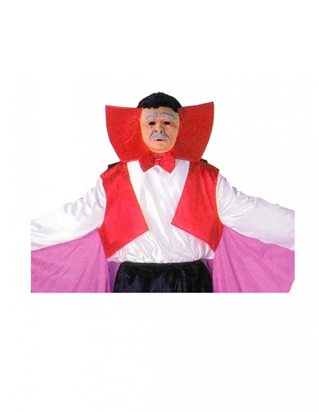 Disfraz Vampiro reversible, que incluye: Por delante una tunica morada y por detras una careta de hombre con traje.