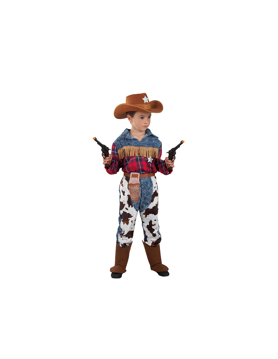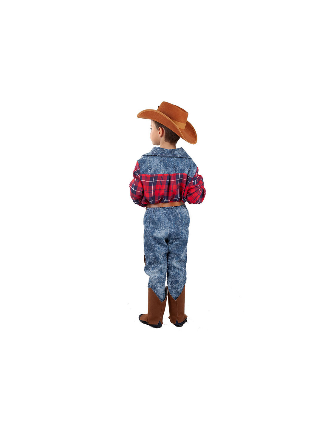 Disfraz vaquero cowboy infantil que incluye camisa, pantalón y cubrebotas.