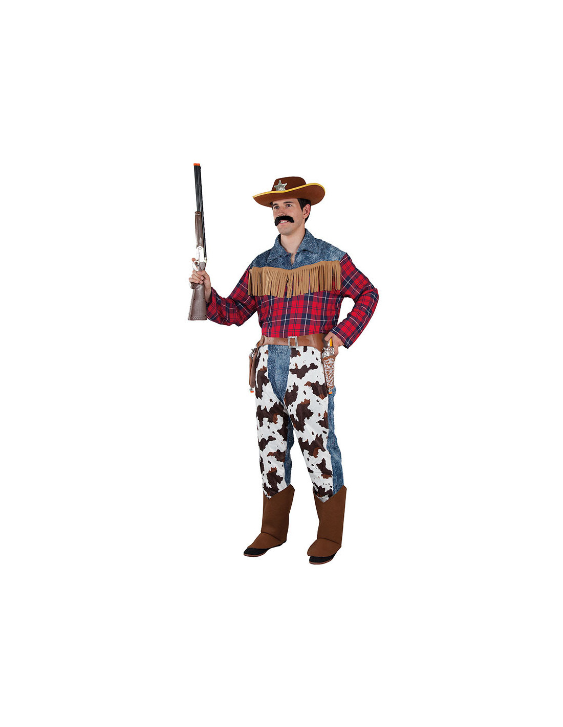 Disfraz vaquero cowboy que incluye camisa, pantalón y cubrebotas.
