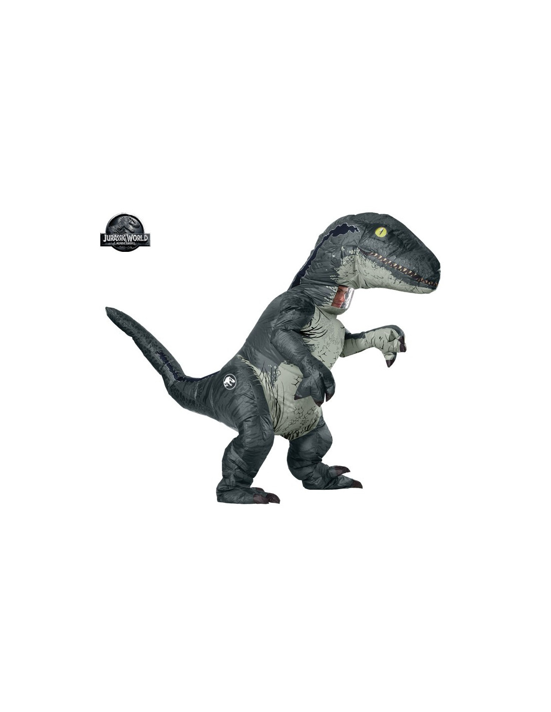 Disfraz Velociraptor hinchable para adulto con ventilador que funciona con 4 pilas AA no incluidas.