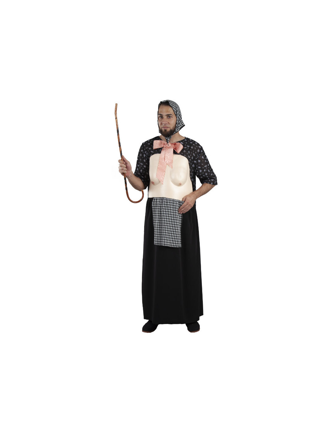 Disfraz Vieja de la Vara adulto que incluye pañuelo, camisa con lazo y pechos de goma eva y falda con delantal.