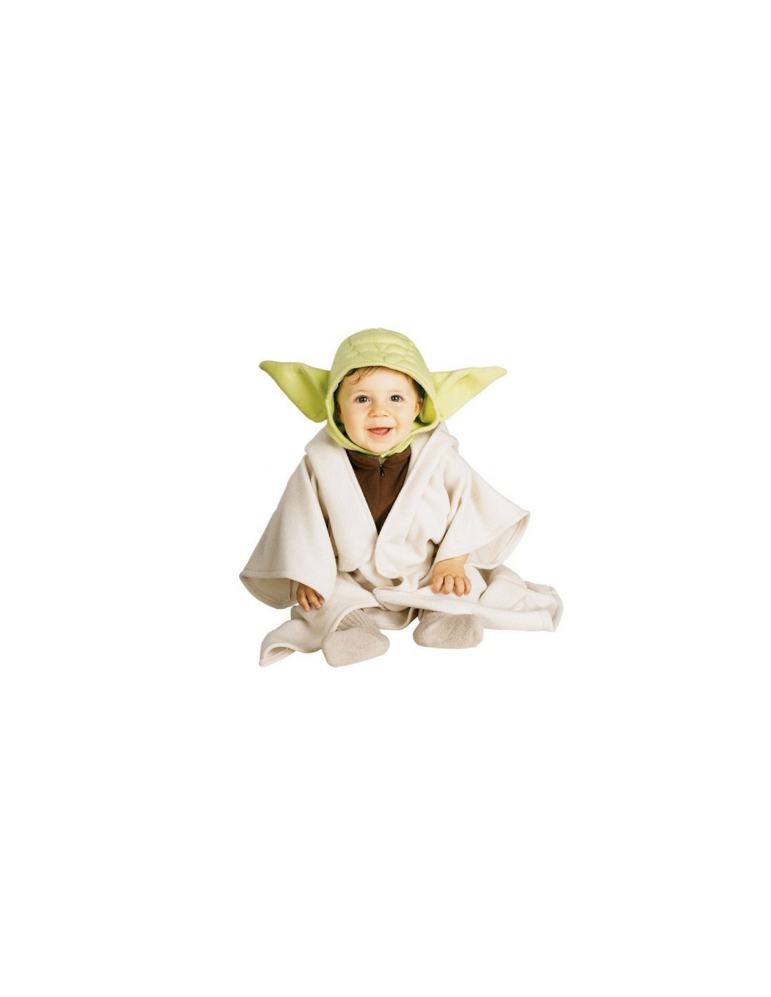 Disfraz Yoda para que tu bebé se convierta en el jedi más fuerte de toda la galaxia. Incluye túnica con pechera marrón y pieza para la cabeza, ambos de tejido polar fino muy suave. Se atan con velcros. Producto con licencia oficial.