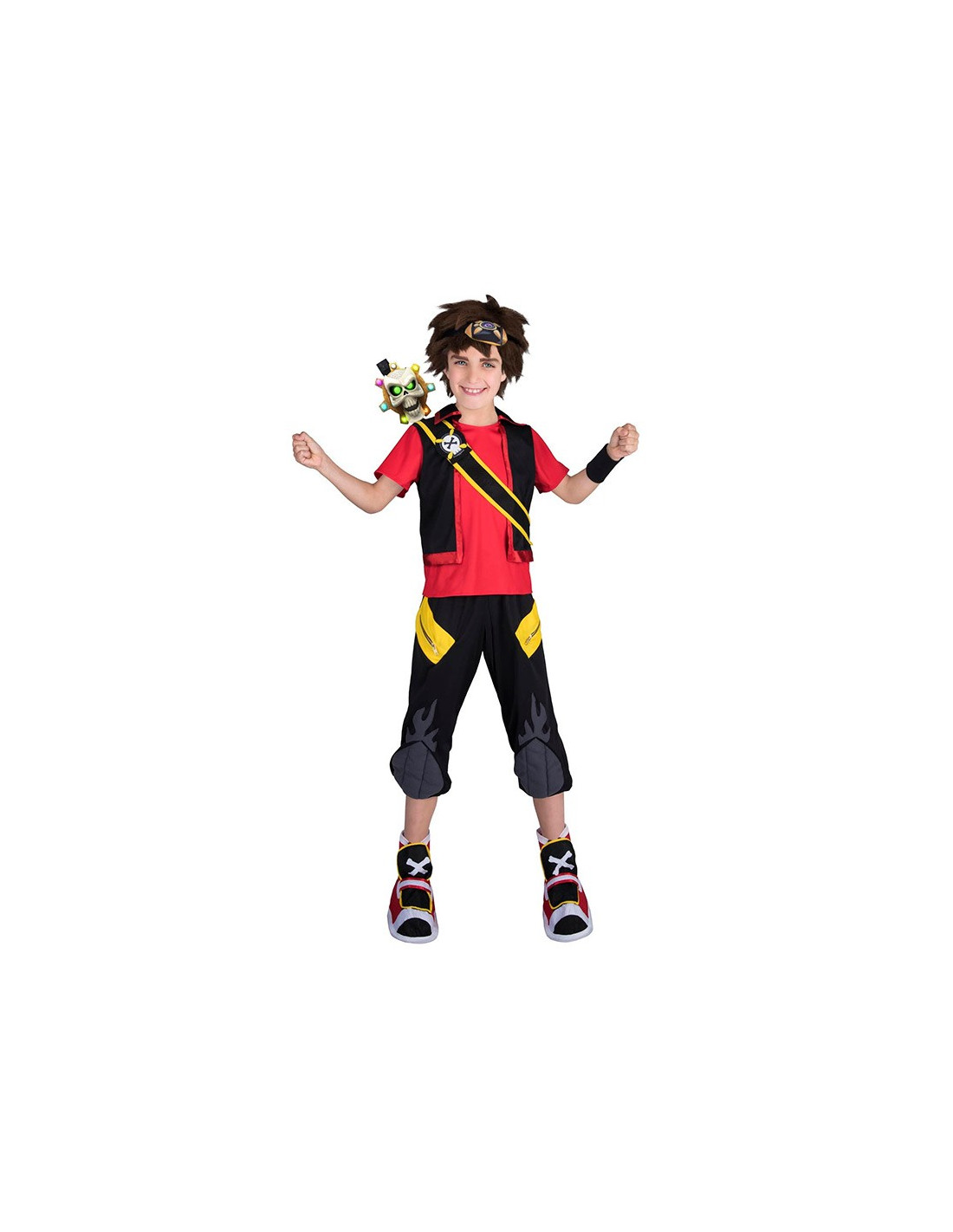 Disfraz Zak Storm infantil que incluye camiseta con chaleco, pantalón, espada, peluca, diadema, brazalete, bandolera y cubrebotas.