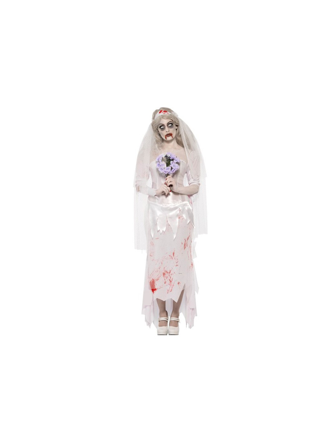 Disfraz de zombie novia que incluye vestido, velo y ramo. No incluye peluca, maquillaje ni calzado.
