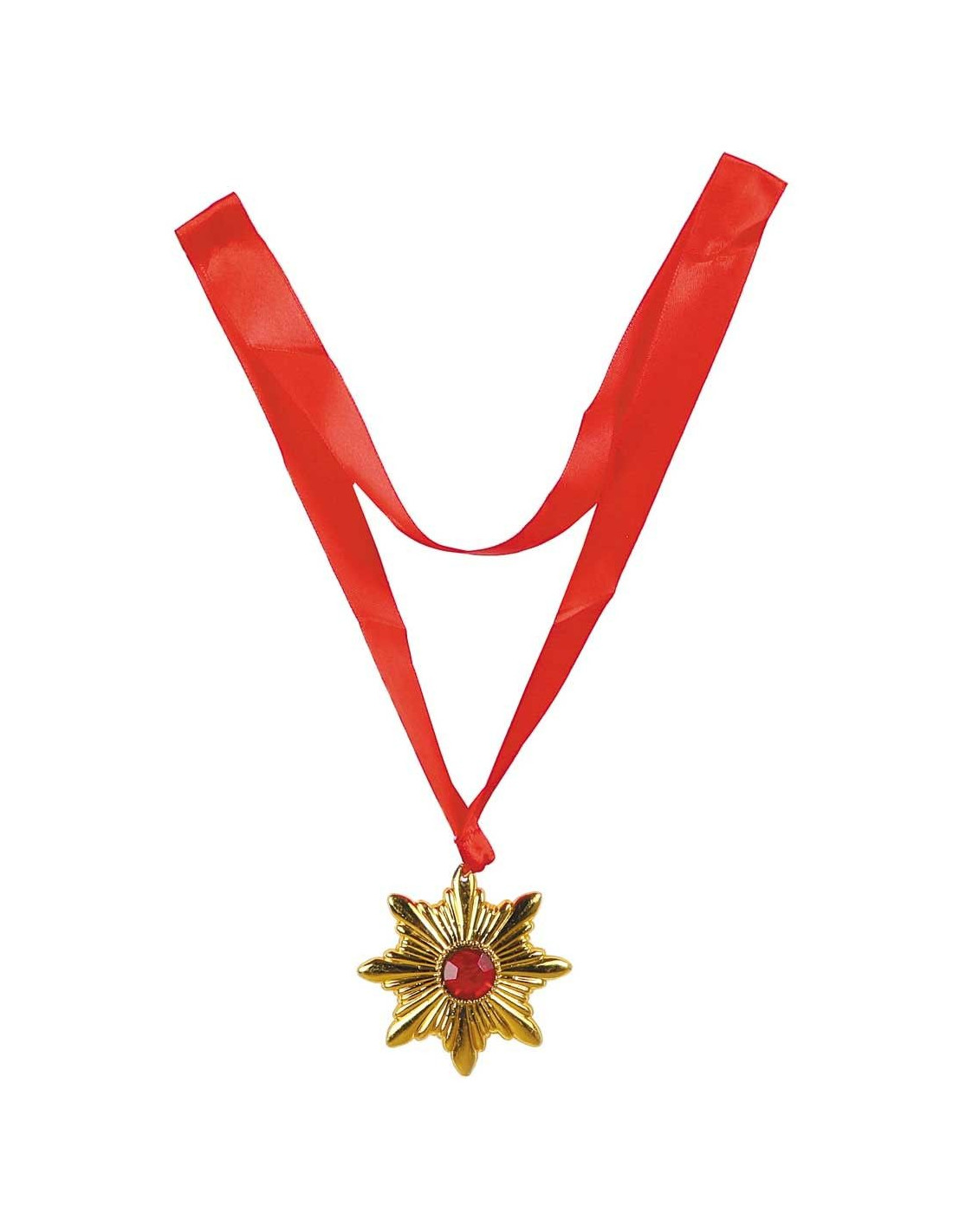 Condecoracion en pvc metalizado con cinta roja para colgar del cuello