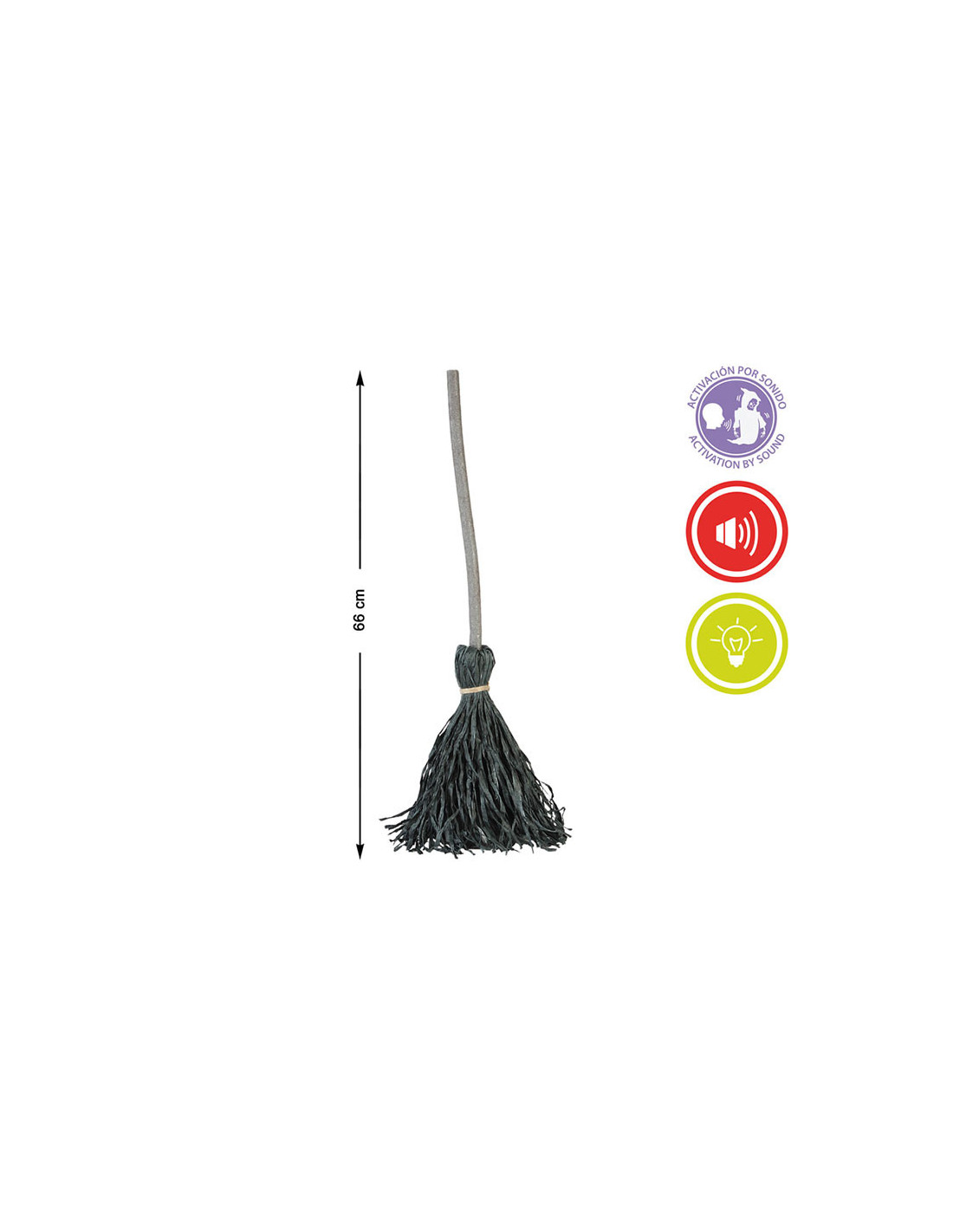 Escoba bruja con luz y sonido que incluye una escoba de 66x12x12cm.