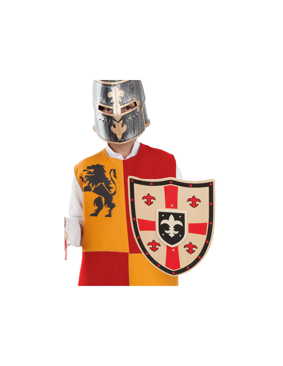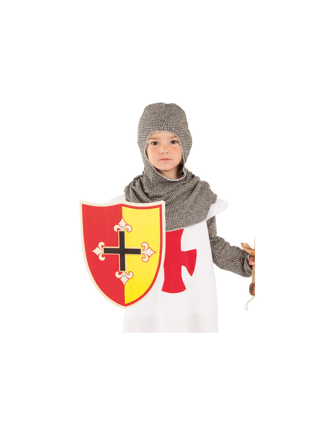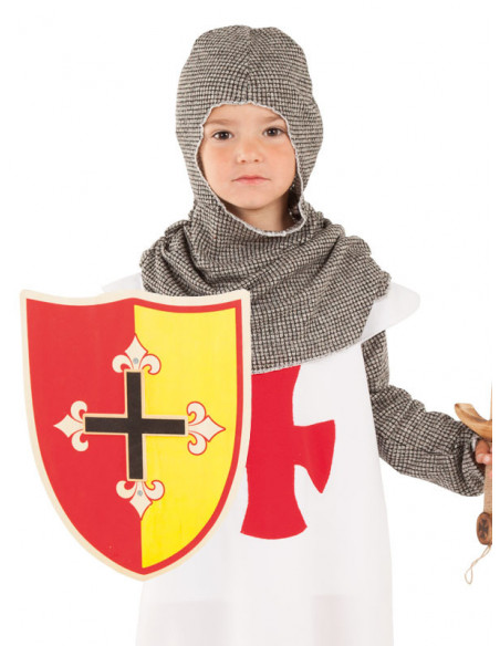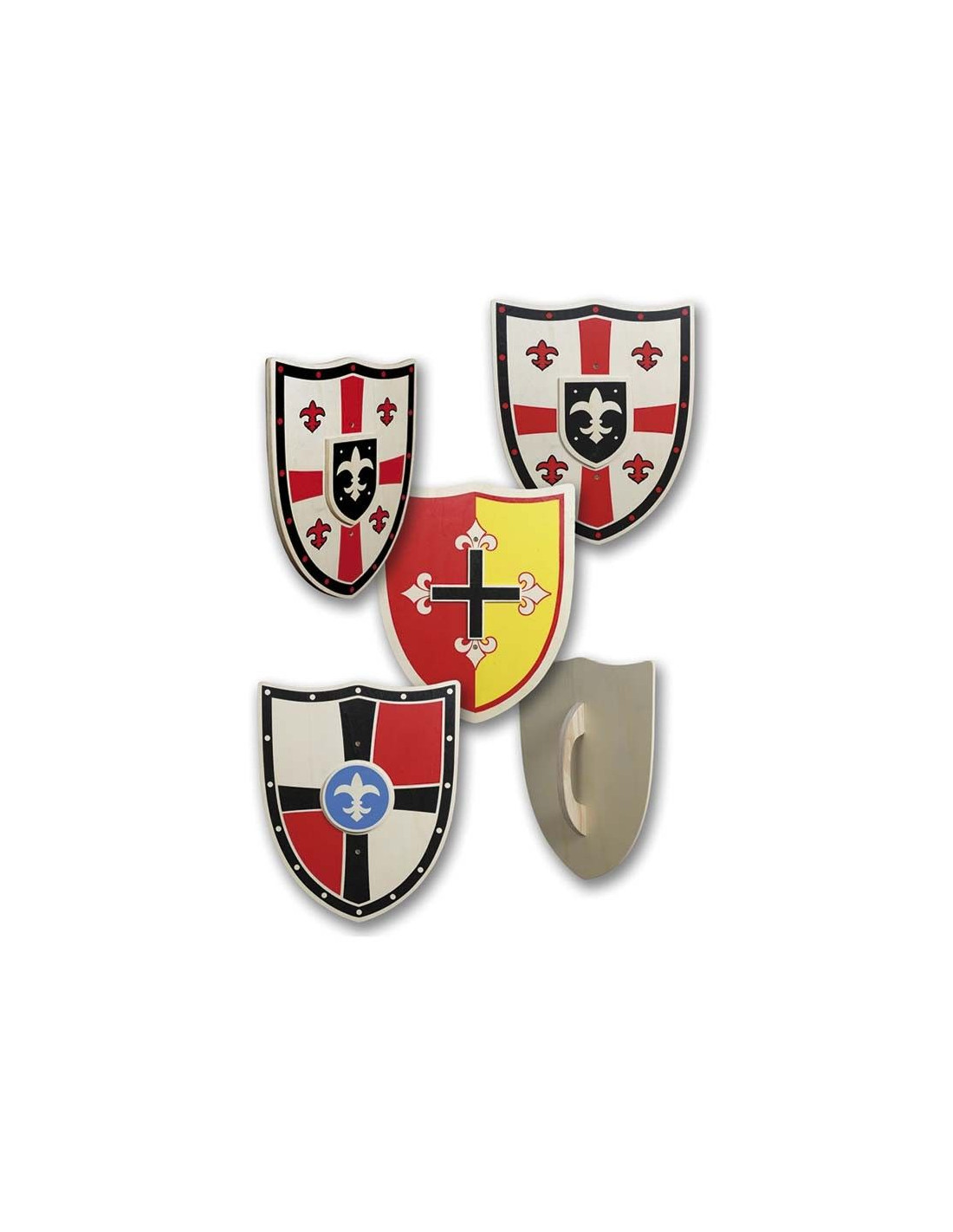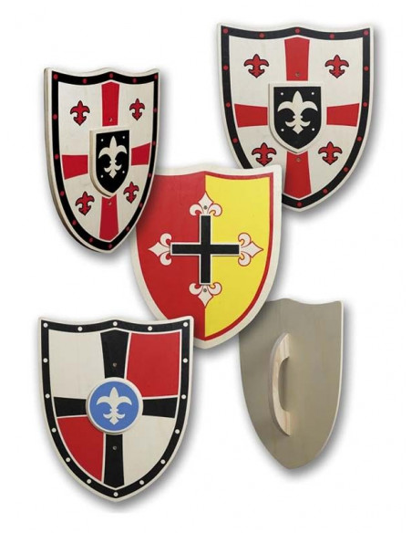 Escudo medieval de madera con la cruz de los cruzados templarios como elemento decorativo principal. Con unas dimensiones aproximadas de 34 cm de diámetro, está disponible en tres modelos surtidos diferentes (no se pueden escoger).