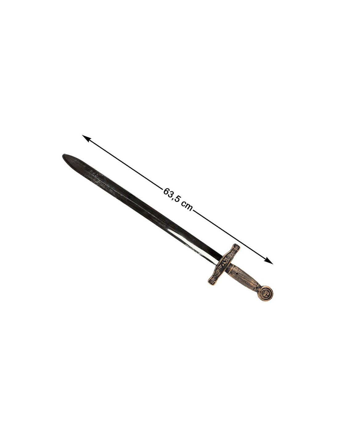 Esta espada medieval es perfecta para completar tu disfraz de guerrero en la Edad Media. Tiene unas medidas de 65x10cm aproximadamente.