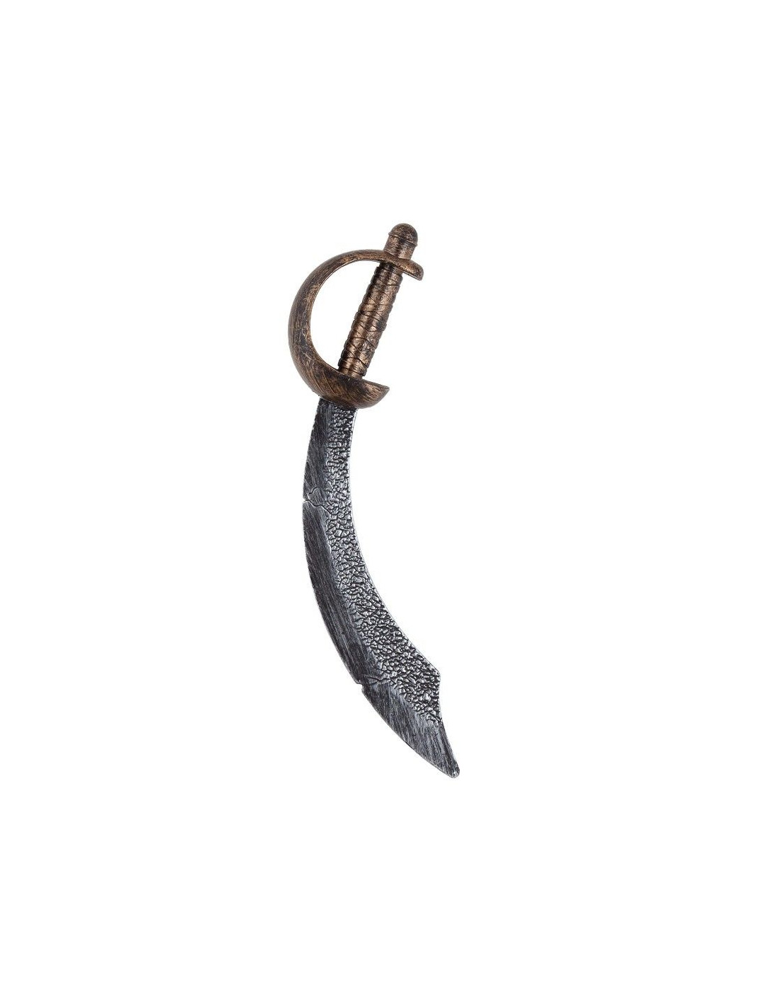 Espada pirata envejecida con forma curva para recorrer los siete mares con tu disfraz de pirata. Es de plástico y tiene una longitud de 48cm.