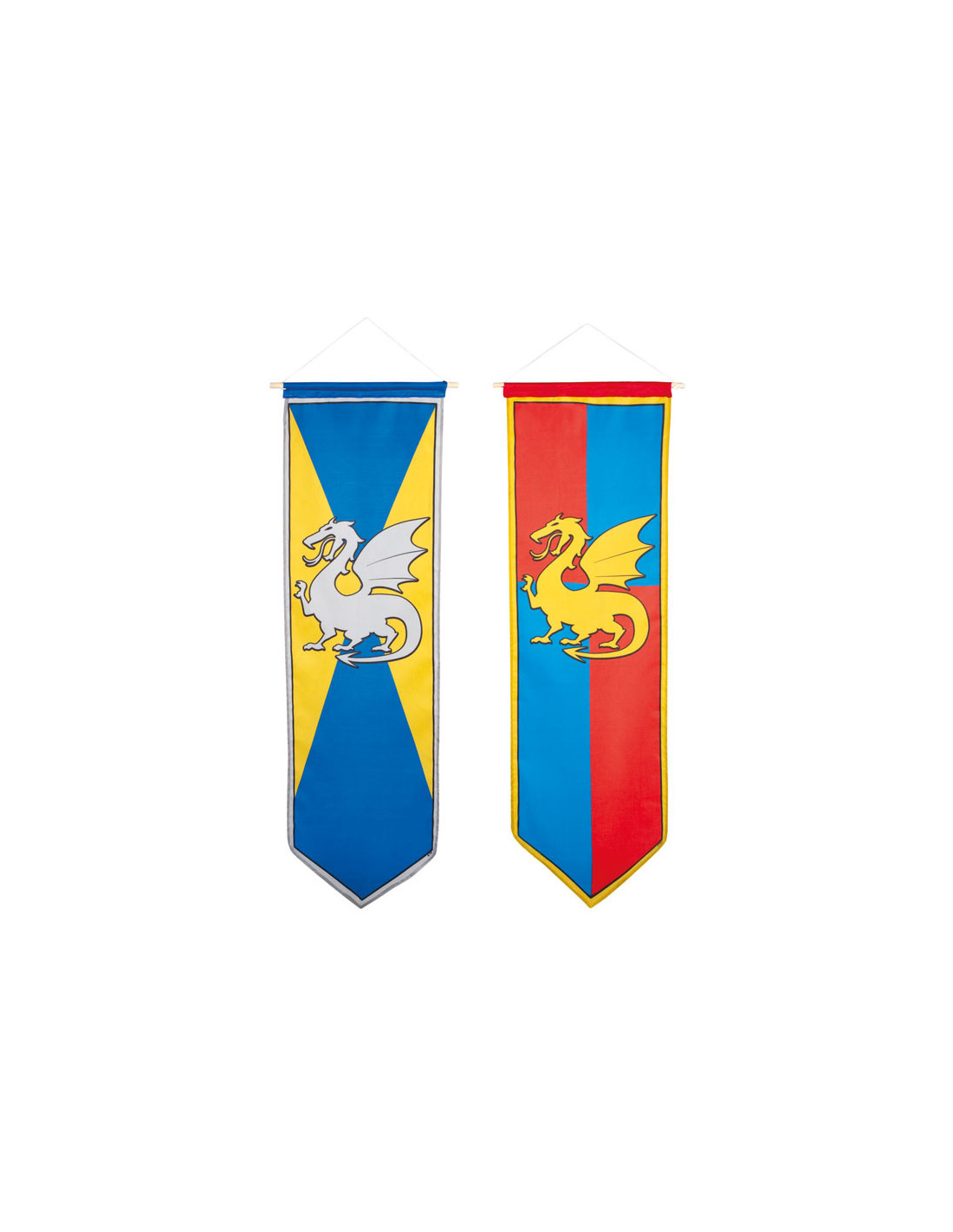 Estandarte medieval que tiene unas medidas de 100x30cm. Dos opciones disponibles, el color gris se refiere al estandarte con el dragón en color gris, y el color amarillo al dragón en dicho color. Fabricados en poliéster 100%.
