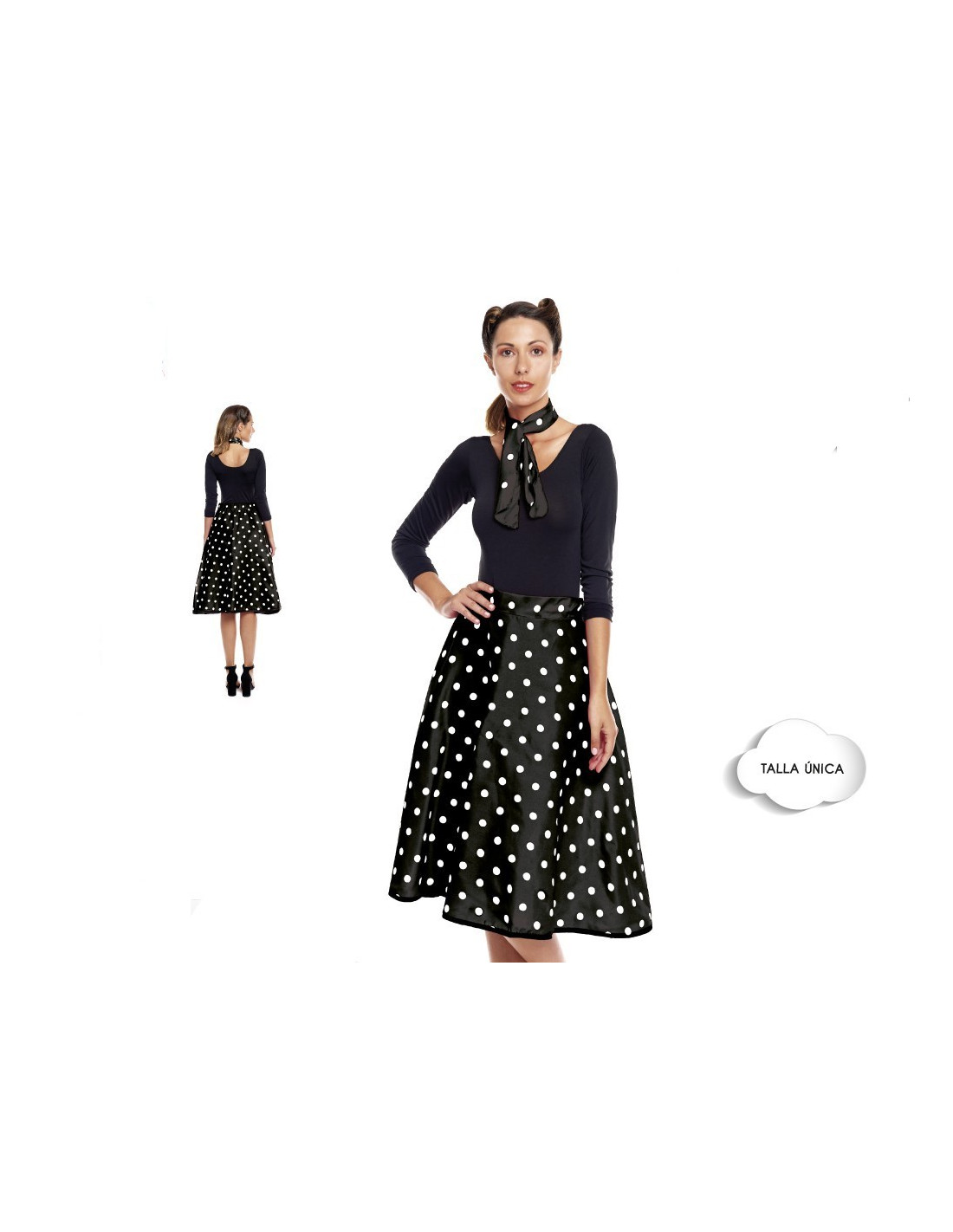 Preciosa falda Años 50 para mujer con gran vuelo para trasladarte hasta tu película favorita de Grease y la década de los 50.