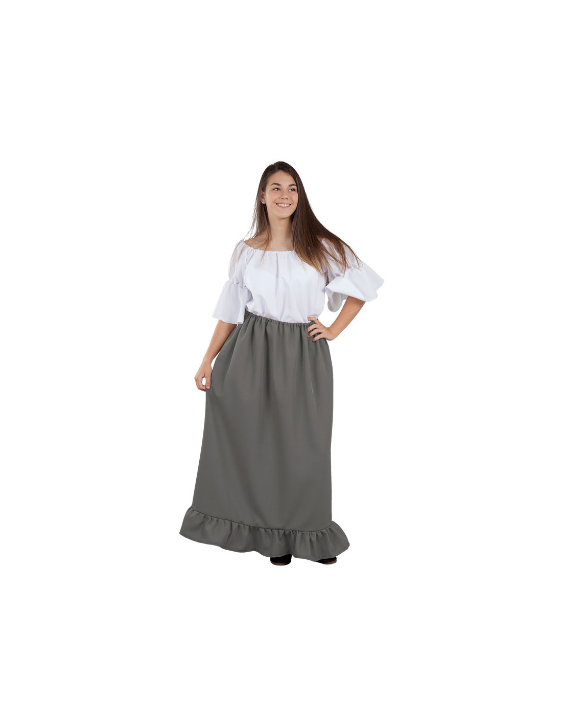 Falda medieval para mujer con el que completar tu traje típico de la Edad Media. Fabricada en poliester 100%, cuenta con volantes decorativos a modo de olas en la parte inferior de la misma y goma elástica para sujetar perfectamente a la cintura.