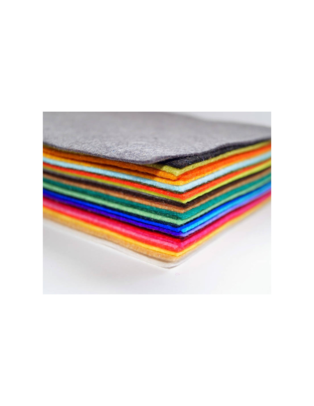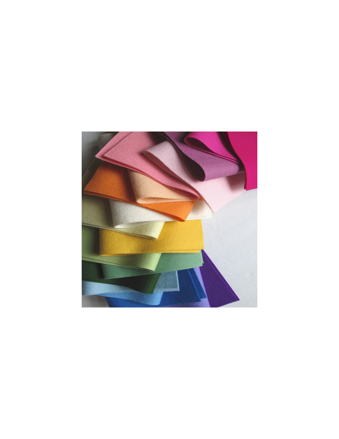 Tejido de fieltro fabricado 100% en poliéster. Está disponible en ancho de 90 cm y 150 cm.
