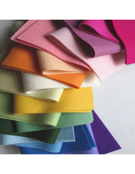 Fieltro de colores con un gramaje x metro cuadro de 180 grm, tiene un grueso aproximado de 0,9mm.
