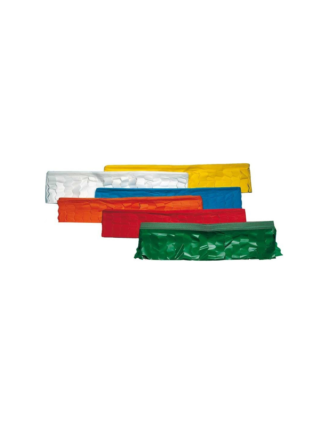 Fleco de plástico muy practico para decoración de fiestas en calles, locales o eventos. Tiras 50 metros de largo por 17 cm. de ancho, se envian en bolsas de 50 metros por color, el precio es por bolsa.