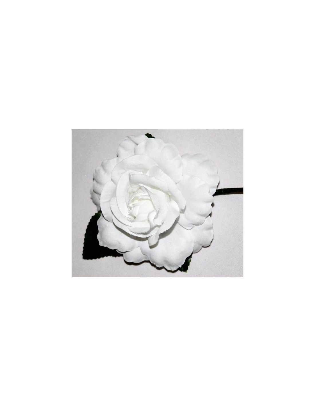 Flor de flamenca grande para completar tu traje de sevillana esta Feria de Abril. Disponible en color blanco y con unas dimensiones de 16cm de diámetro.