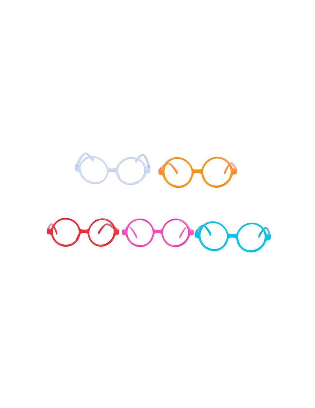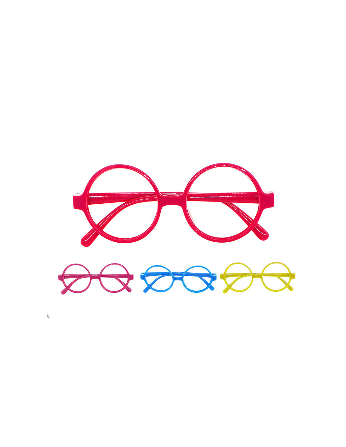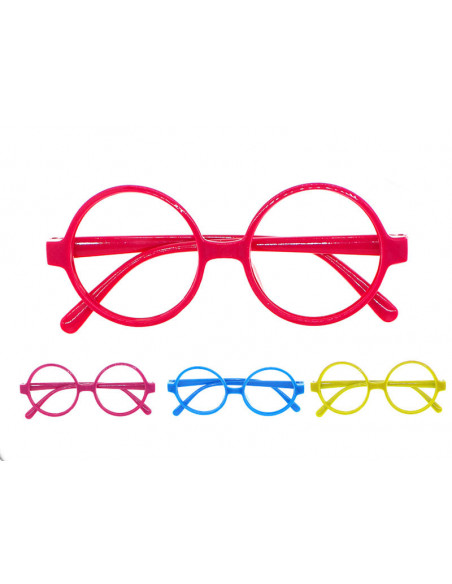 Gafa estudiante de colores que incluye una gafa de montura redonda, de 5cm de diámetro y 13cm de ancho.