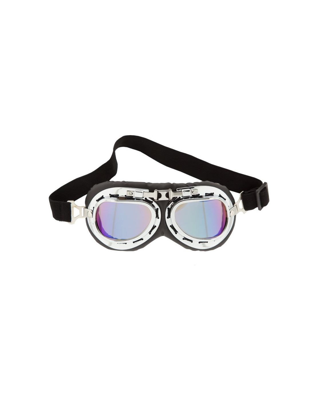 Dale un aire retro a tu disfraz de motorista o completa tu disfraz de Steampunk. Estas versátiles gafas tienen una montura negra y plateada, con cristal tornasolado. La parte interior se encuentra acolchada con un falso cuero. La goma te permitirá ajustarla a tu cabeza.