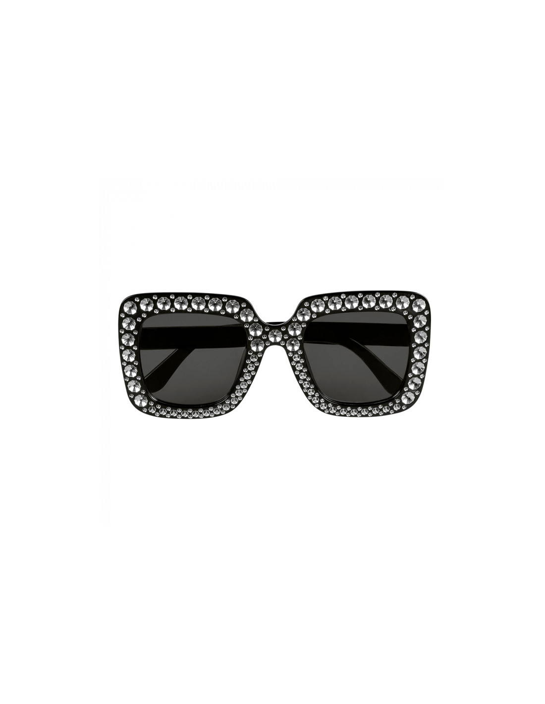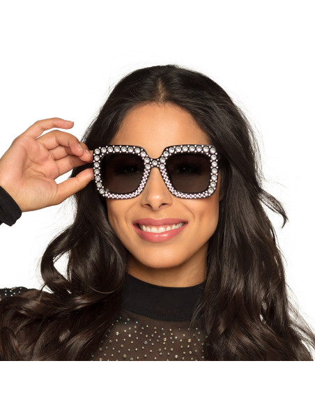 Gafas disco diamantes de plástico en color negro con piedras blancas.