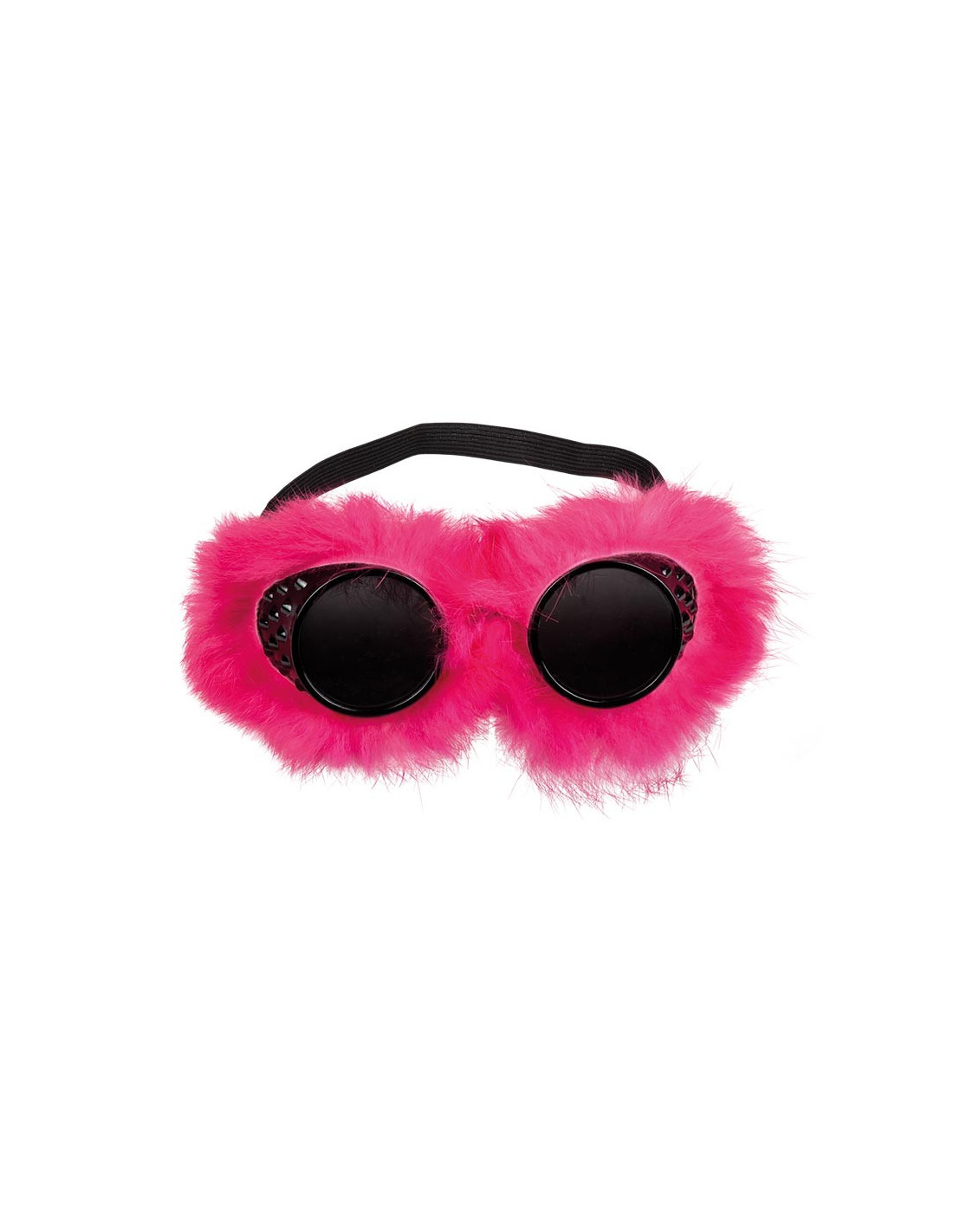 Gafas fantasía Steampunk para mujer con pelo sintético de color rosa alrededor.