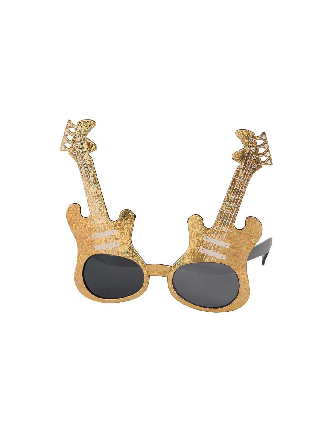 Divertidas gafas con guitarras en color metalizado brillante para ser el rey del rock en tu fiesta de disfraces.