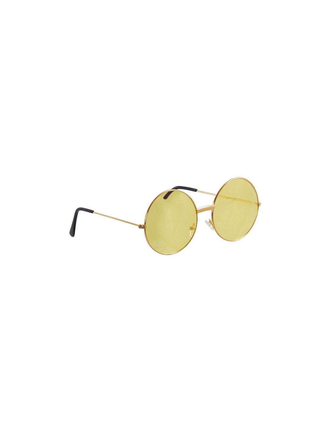 Reinará la paz y la armonía en tu fiesta temática hippie con estas gafas hippies amarillas. Incluye unas clásicas y originales gafas hippies amarillas, de cristal con baja opacidad, fabricadas en plástico de pvc y monturas doradas. Ideal también para complementar tu disfraz de John Lennon.