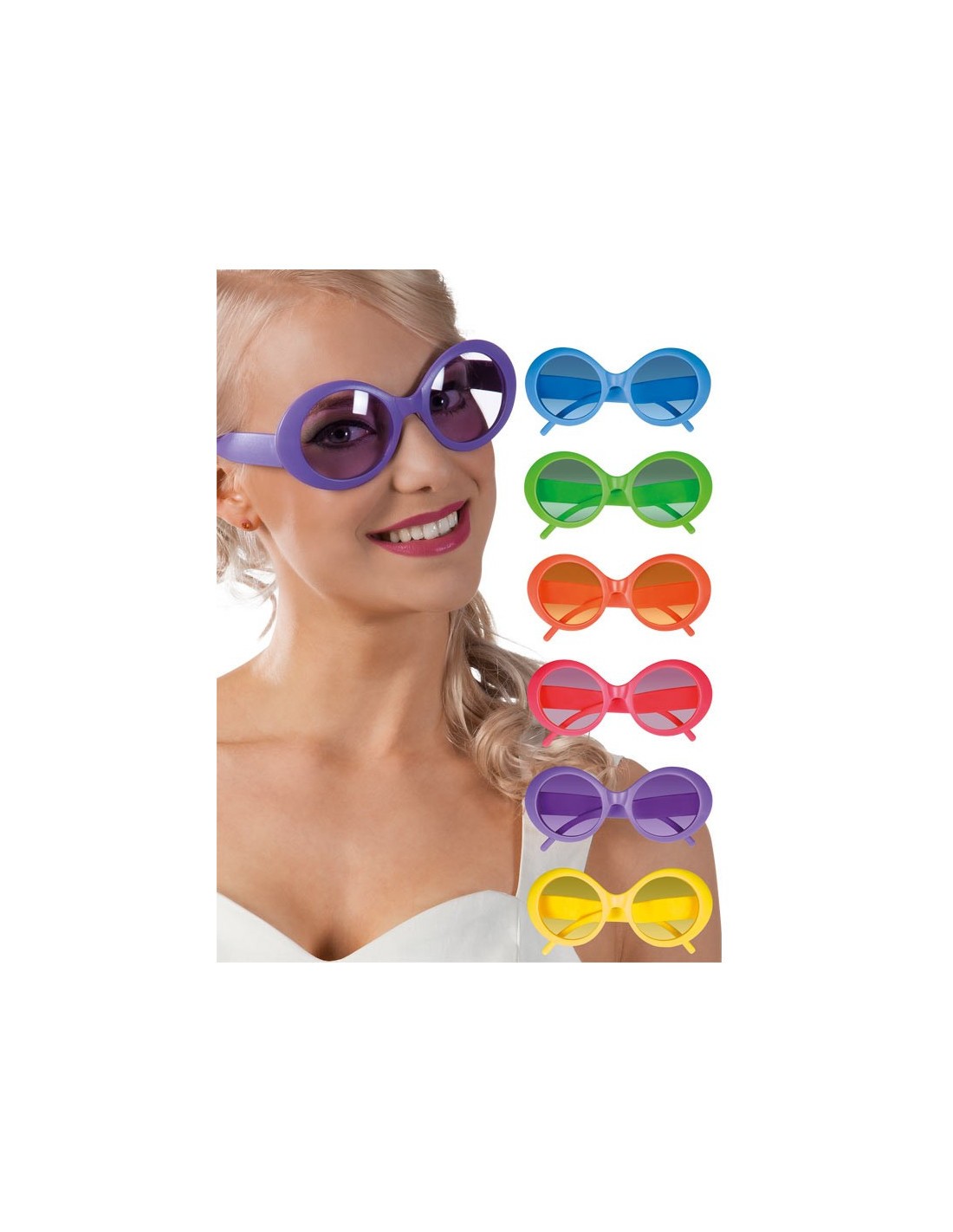 Combina estas estilosas gafas años 60 con tu look sesentero y elige el color que más te favorezca. Estas gafas con pasta y cristal de color son perfectas para fiestas temáticas, Carnaval o despedida de soltera.