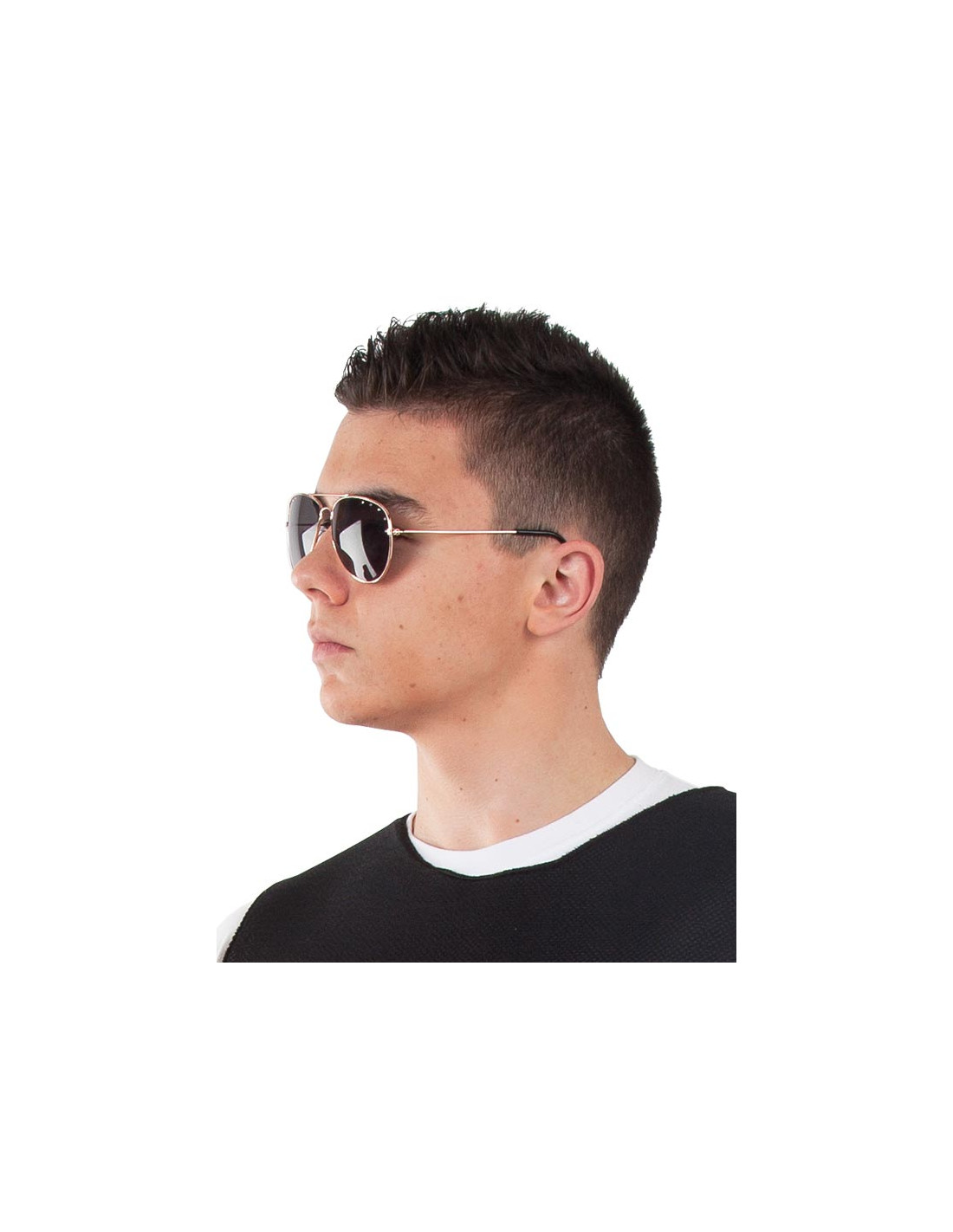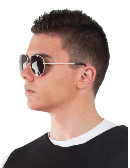 Complementa tu disfraz de motero o de estrella del cine con estas gafas de motero tipo aviador. Incluye gafas de motero tipo aviador con la montura fabricada en metal de color dorado y las lentes de cristal oscuro. Ideal para tus fiestas temáticas de los años 60,70 y 80.