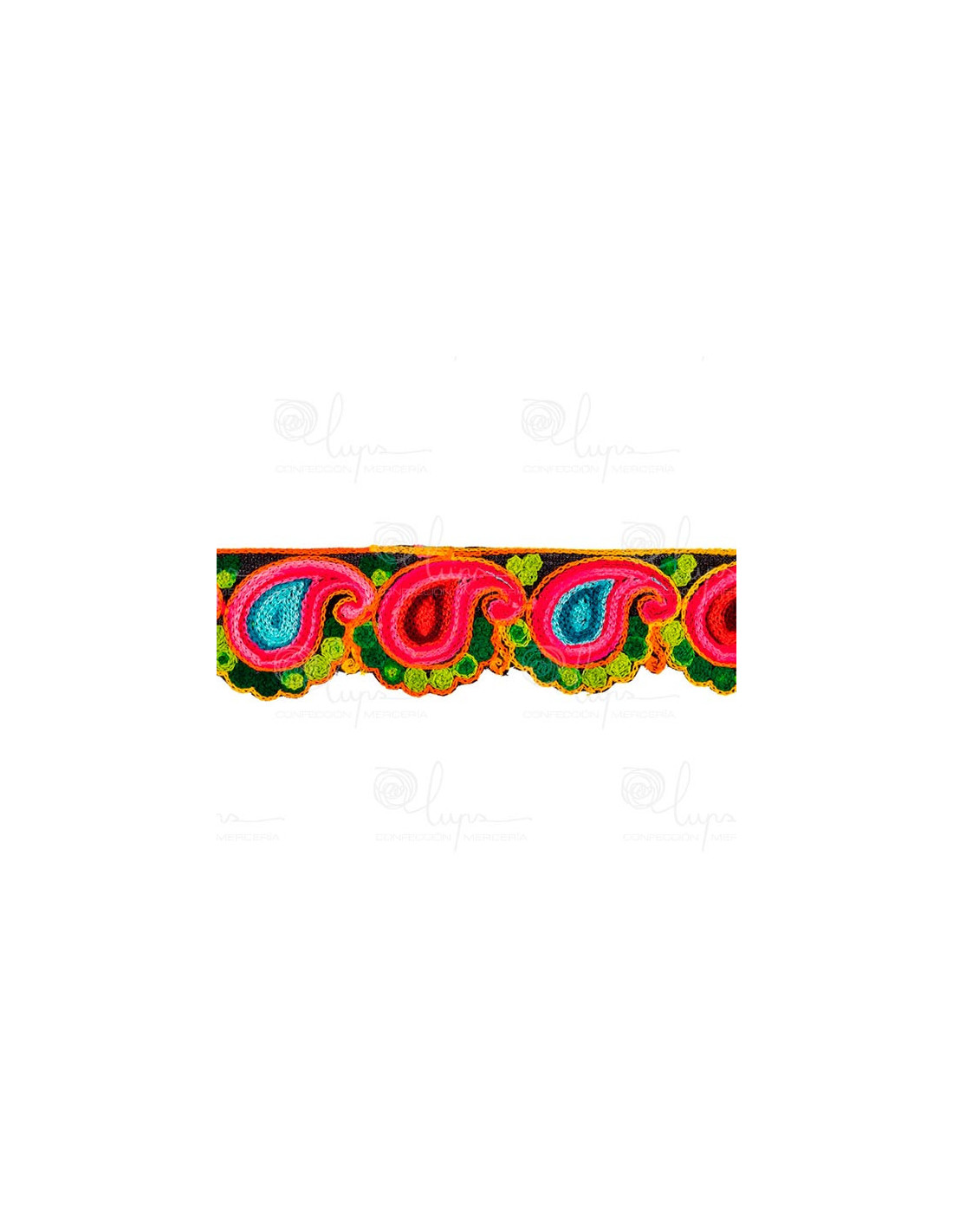 Galón de lana con colores muy vivos y llamativos para tus creaciones. Tiene una anchura de 6 cm.