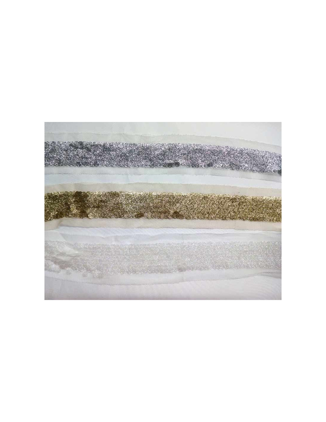 Cinta de tul de 5cm de ancho, con tira de lentejuelas de 3cm de anchura. Precio por metro.