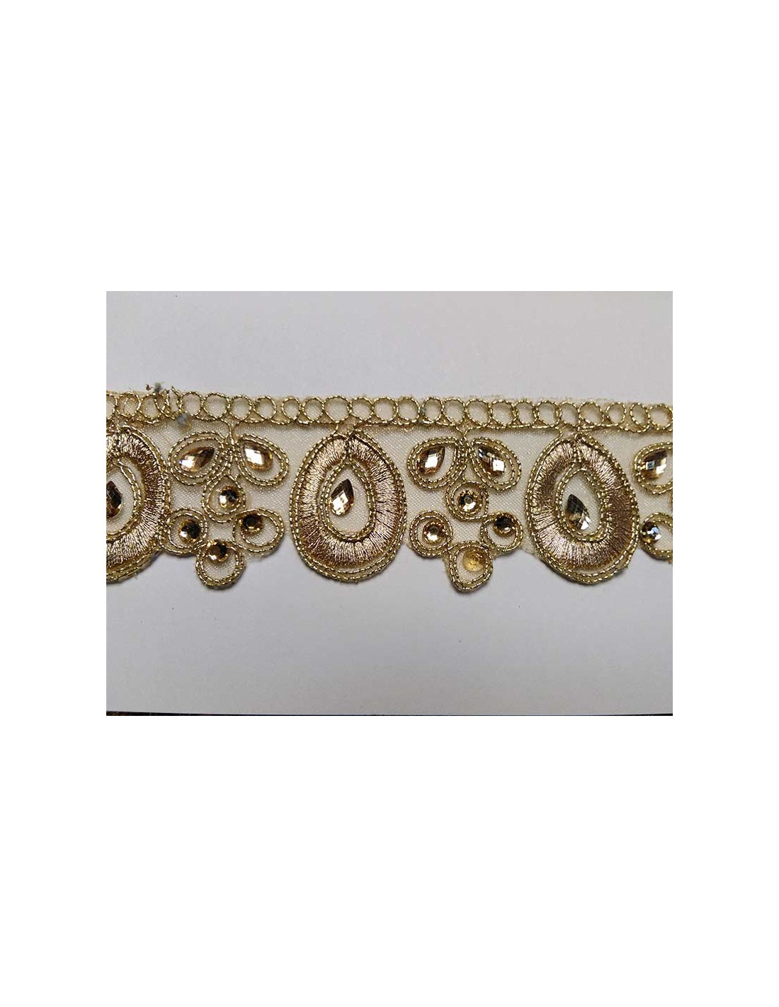 Galón pedrería lágrima de 4cm de ancho decorada con pedrería. Se vende por metros. Unidad mínima de compra 1m.